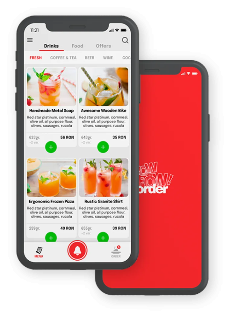 Vezi meniul interactiv, comanzi rapide, ceri nota de plată flexibil. Totul, din telefonul tău!